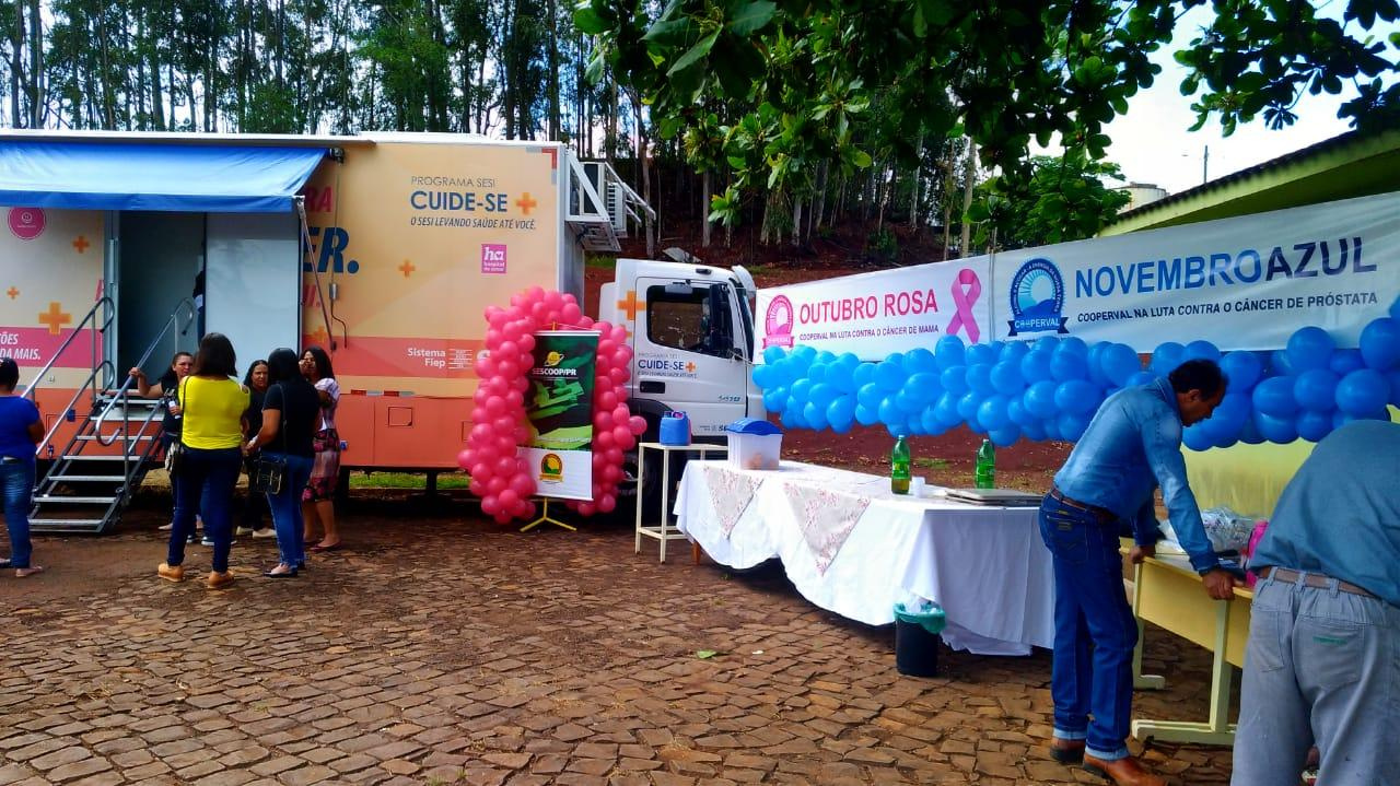 Nos dias 22 e 23 de outubro realizamos na Cooperativa um trabalho fantástico de prevenção ao câncer. Em parceria com o Sescoop e com o Sesi conseguimos realizar exames de prevenção ao câncer em 265 funcionários. Foram realizados exames preventivos (papanicolau), mamografias e PSA. Para a Cooperativa foi muito gratificante ver tantas pessoas dispostas a se cuidar um pouquinho.